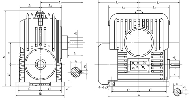 PWU80-PWU355、型平面二次包絡(luò)環(huán)面蝸桿減速器主要尺寸