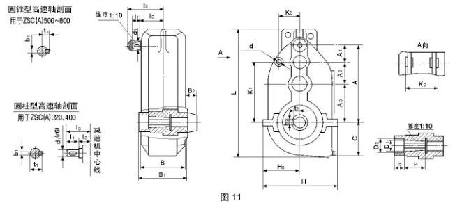圓柱齒輪減速器,三級圓柱齒輪傳動,主要為行車配套,亦可作其它減速器裝置。ZSC、ZSC(A)