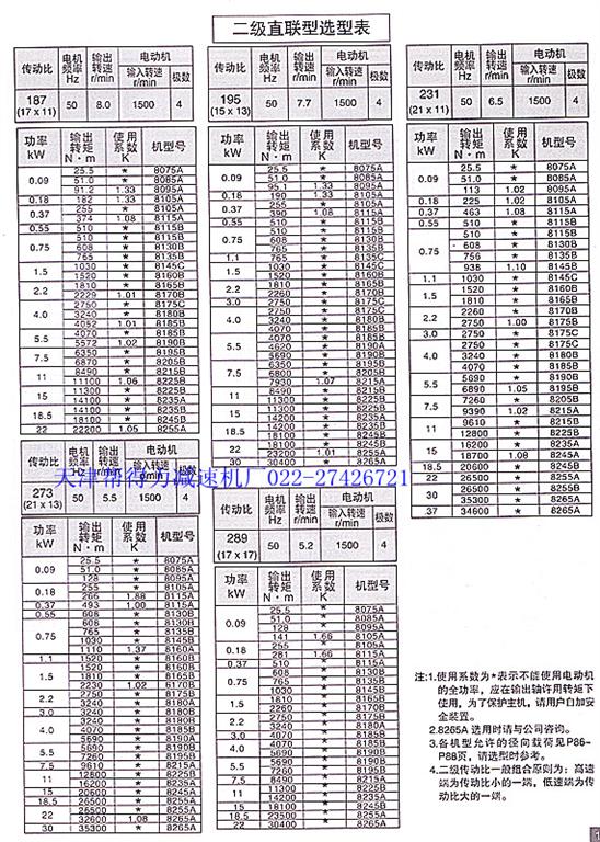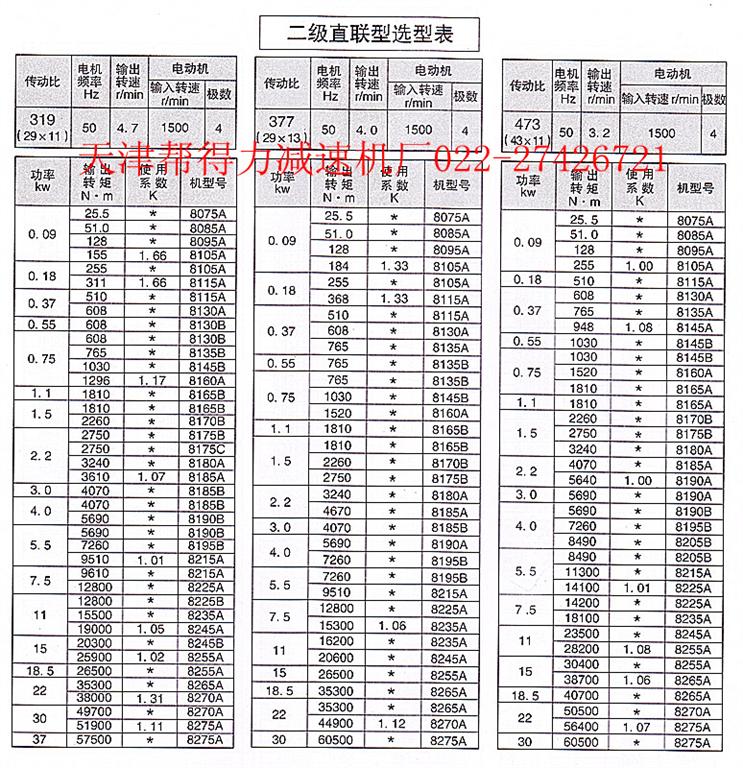 擺線針輪減速機型號-擺線針輪減速機選型-擺線針輪減速機參數(shù)-二級直聯(lián)擺線針輪減速機選型表-天津幫得力減速機有限公司